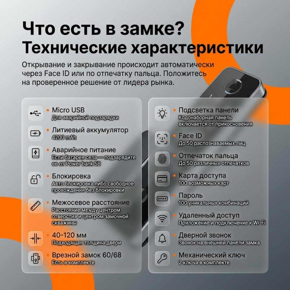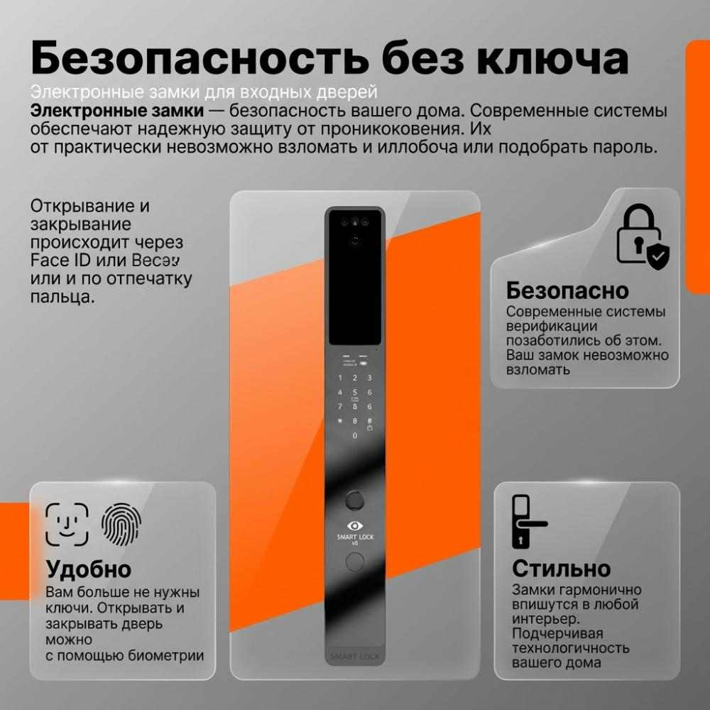 Верхний - электронный СМАРТ-замок SmartEM Lock V8, руссифицирован, видеоглазок.